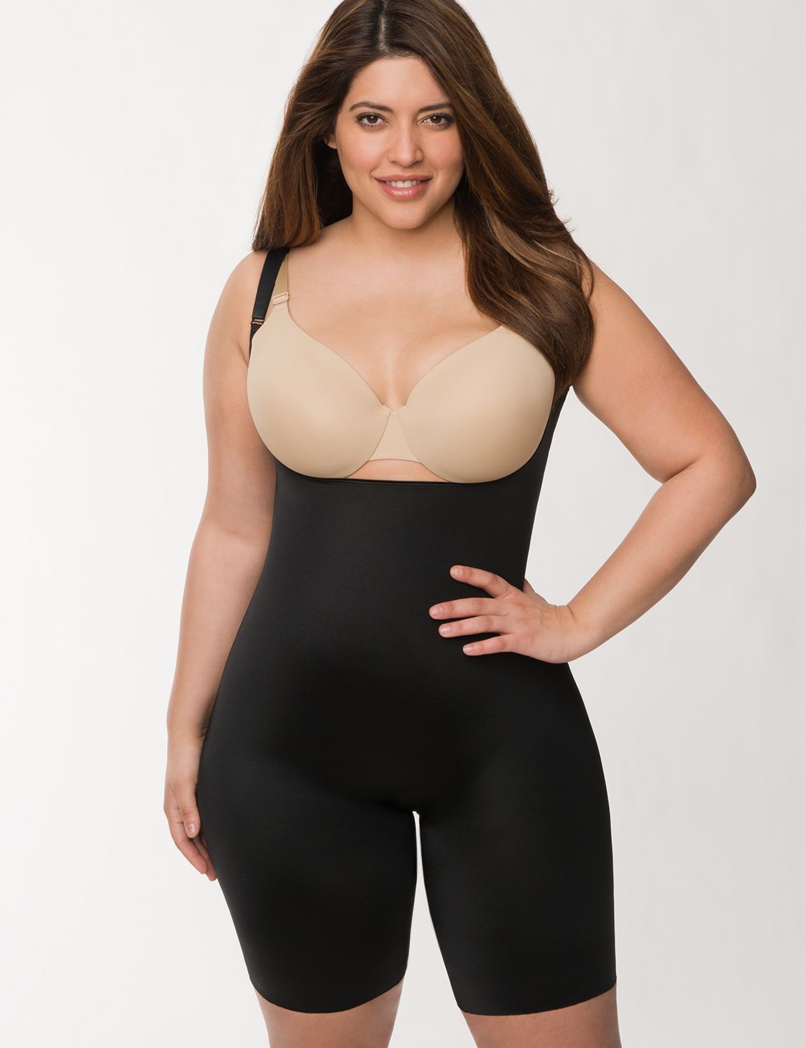 Now the downs of this corset…while it squeezes in all that belly flab that can make me appear 7 months pregnant, that flab has to go somewhere else, right? The laws of physics dictate that. So where does it go? Well, for me, it goes out the bottom and out the top. So I end up with unflattering saddle bags just below my hips and a giant roll of back fat pouring out the top! So now this needs to be rectified with more shapewear!